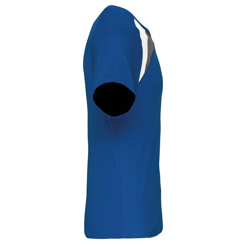 100% polyester. Quick-drying fabric. Contrasting pieces. Finished with superior tone seams. Finished with double stitching on the bottom of the sleeves and the garment.